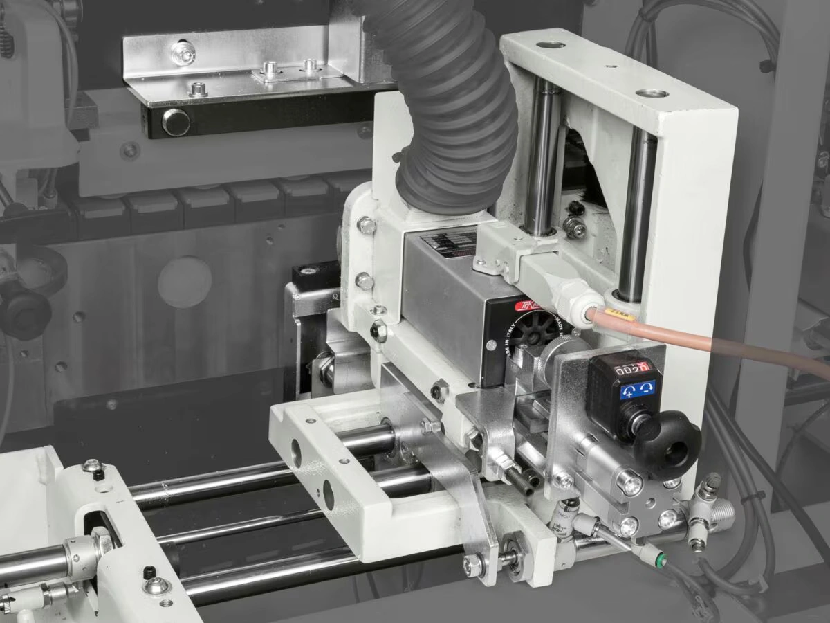 Высокая производительность и быстрая настройка благодаря новой автоматической пневматической системе, управляемой ЧПУ станка – для узла профилирования, узла скребка кромки и узла скребка клея.
