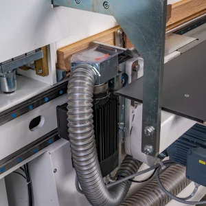 Опционально доступный строгальный агрегат еще больше улучшает качество резки. Прижимная планка пневматически прижимается с обеих сторон, что позволяет точно фиксировать даже волнистые пакеты шпона. Параллельная линейка с магнитной измерительной системой доступна в качестве дополнительного оборудования.
