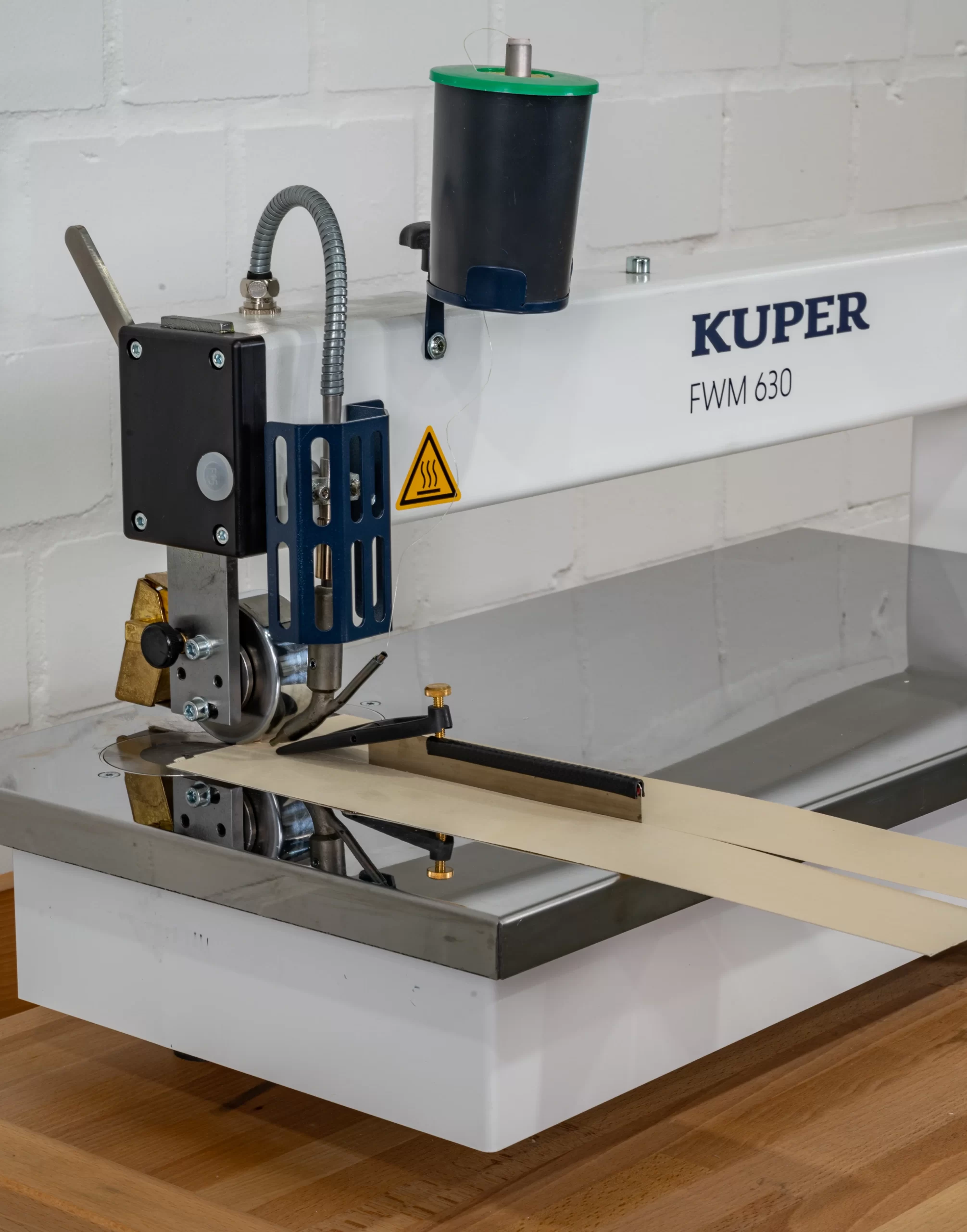 Специальная клеевая нить KUPER, наносимая зигзагообразно, гарантирует абсолютно прочный и плотный шов. Клеевая нить вводится во время прессования, что экономит время, которое в противном случае потребовалось бы для шлифовки клеевого материала.