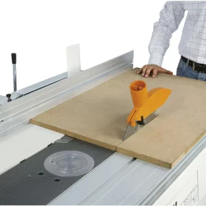 Регулируемый по наклону пильный блок с анодированным алюминиевым скользящим столом, который скользит рядом с лезвием, обеспечивает большую точность резки.