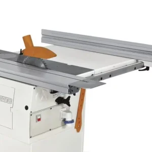 Передвижной стол из анодированного алюминия скользит непосредственно вдоль пильного диска, тем самым обеспечивая большую точность резки.