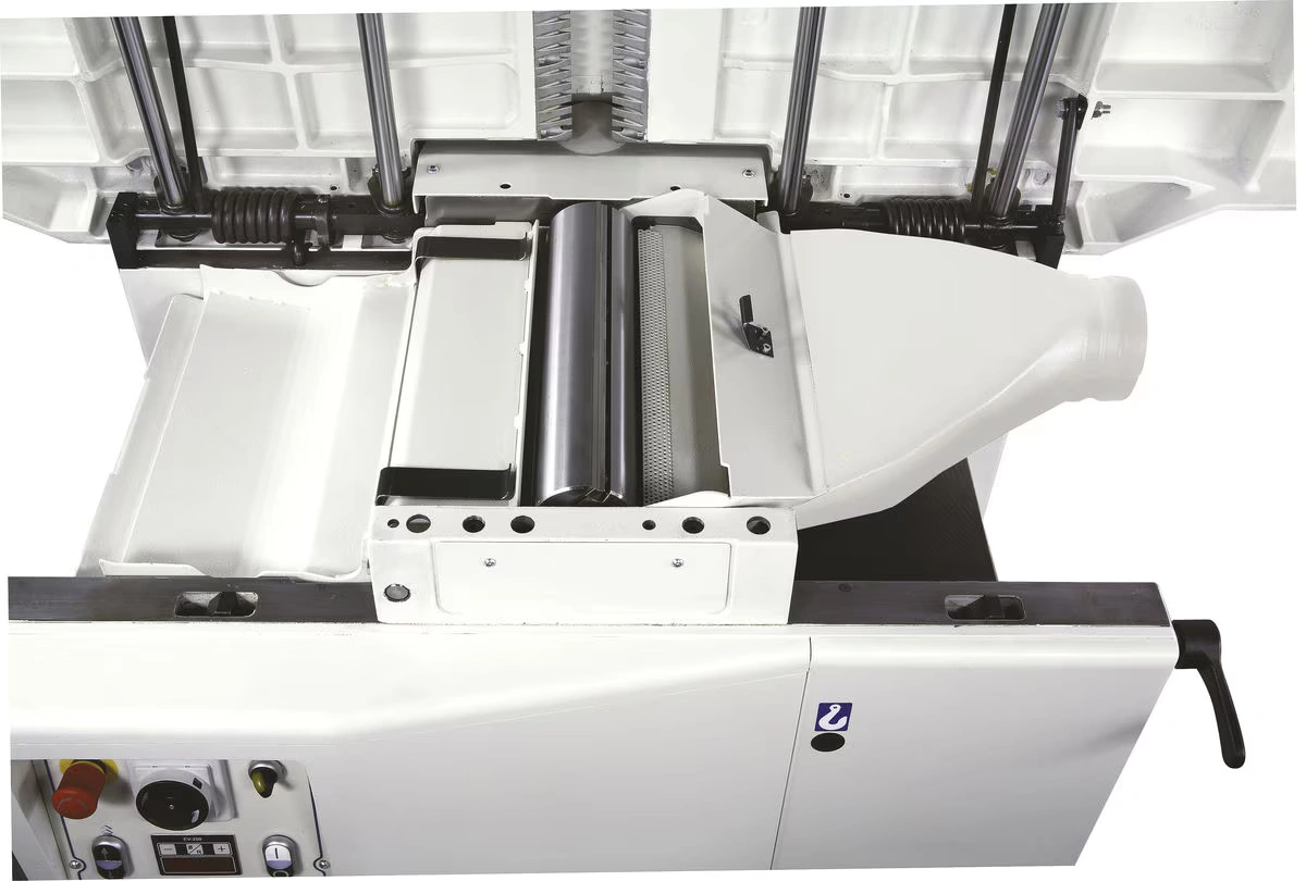 Для получения безупречной поверхности давление подающих валиков рейсмуса можно регулировать в зависимости от обрабатываемого типа древесины. Подающий валик имеет спиральный профиль, обеспечивающий прочную и равномерную подачу заготовки, в то время как выходной валик из пескоструйной стали поддерживает идеальное качество поверхности после обработки.