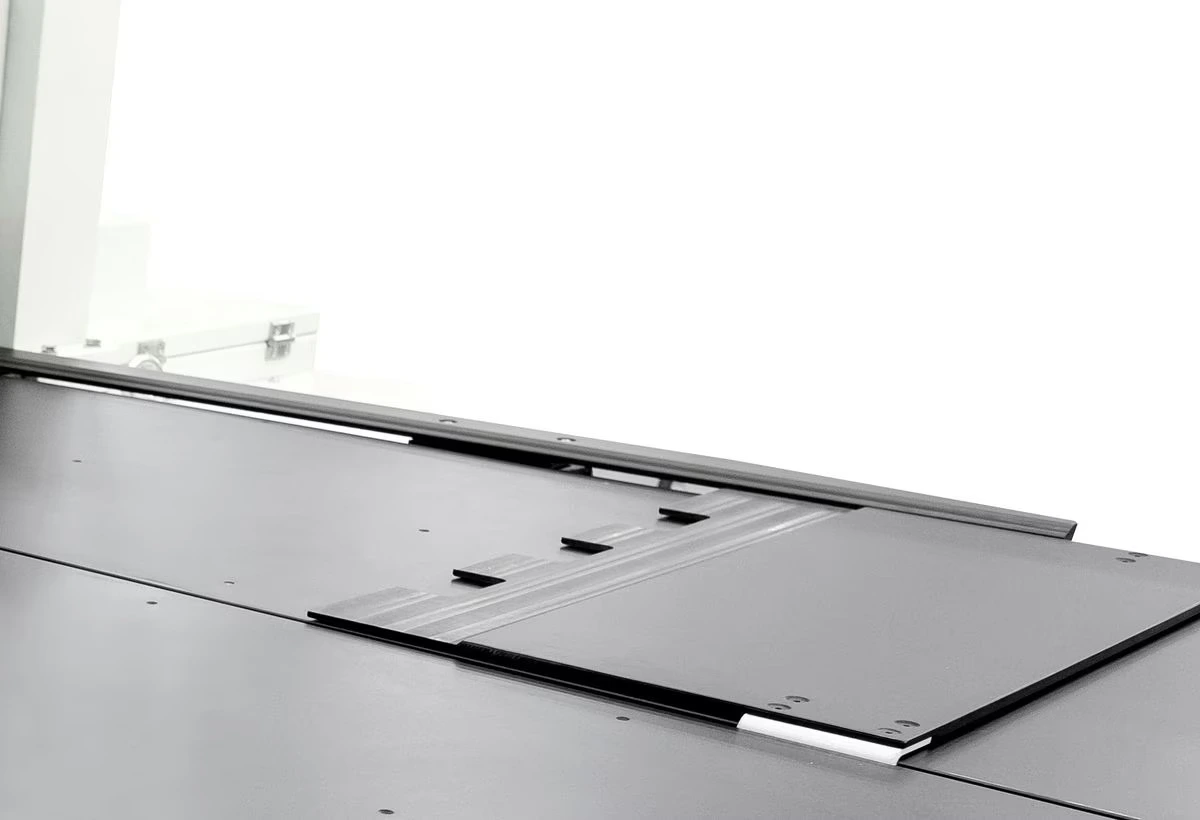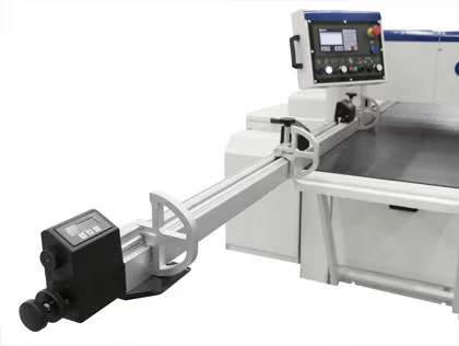 Izturīgs un uzticams teleskopiskais kvadrātveida lineāls ar operatoram vērstu slīpu mērlenti un 2 apgriežamiem atduriem: paneļu kvadrātveida apstrāde līdz 2500×3000 mm (pēc izvēles līdz 3200×3200 mm). Lielizmēra fiksētais galds nodrošina stabilu paneļa atbalstu apstrādes laikā.