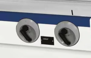 Iegriezējzāģa manuāla regulēšana: vienkārša un efektīva. Vertikālās un horizontālās regulācijas tiek veiktas ar lietotājam ērtām mehāniskām svirām, kas nodrošina precīzas un vienmērīgas kustības. Noderīgi mehāniskie atduri ļauj ātri atgriezties iepriekšējā pozīcijā. Vadības elementu novietojums ļauj tos izmantot, neatkāpjoties no darba pozīcijas priekšā pie iekārtas.