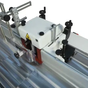 Frēzes žogs ar mehānisko programmēšanu un digitāliem rādījumiem nodrošina desmitdaļmilimetru precizitāti galdu pozicionēšanā – izmēģinājuma frēzējumi nav nepieciešami.