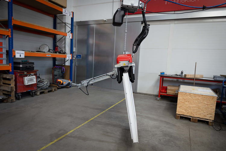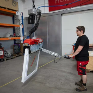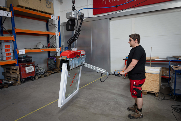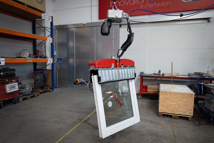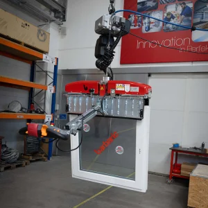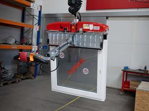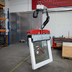 • Vertikālai izolācijas stikla (IG-stikla) transportēšanai līdz 6 x 3 m ar piesūcekņiem abās stikla pusēs