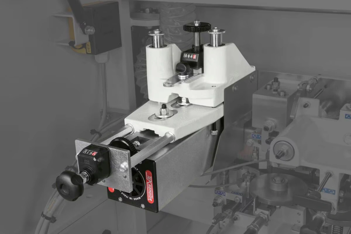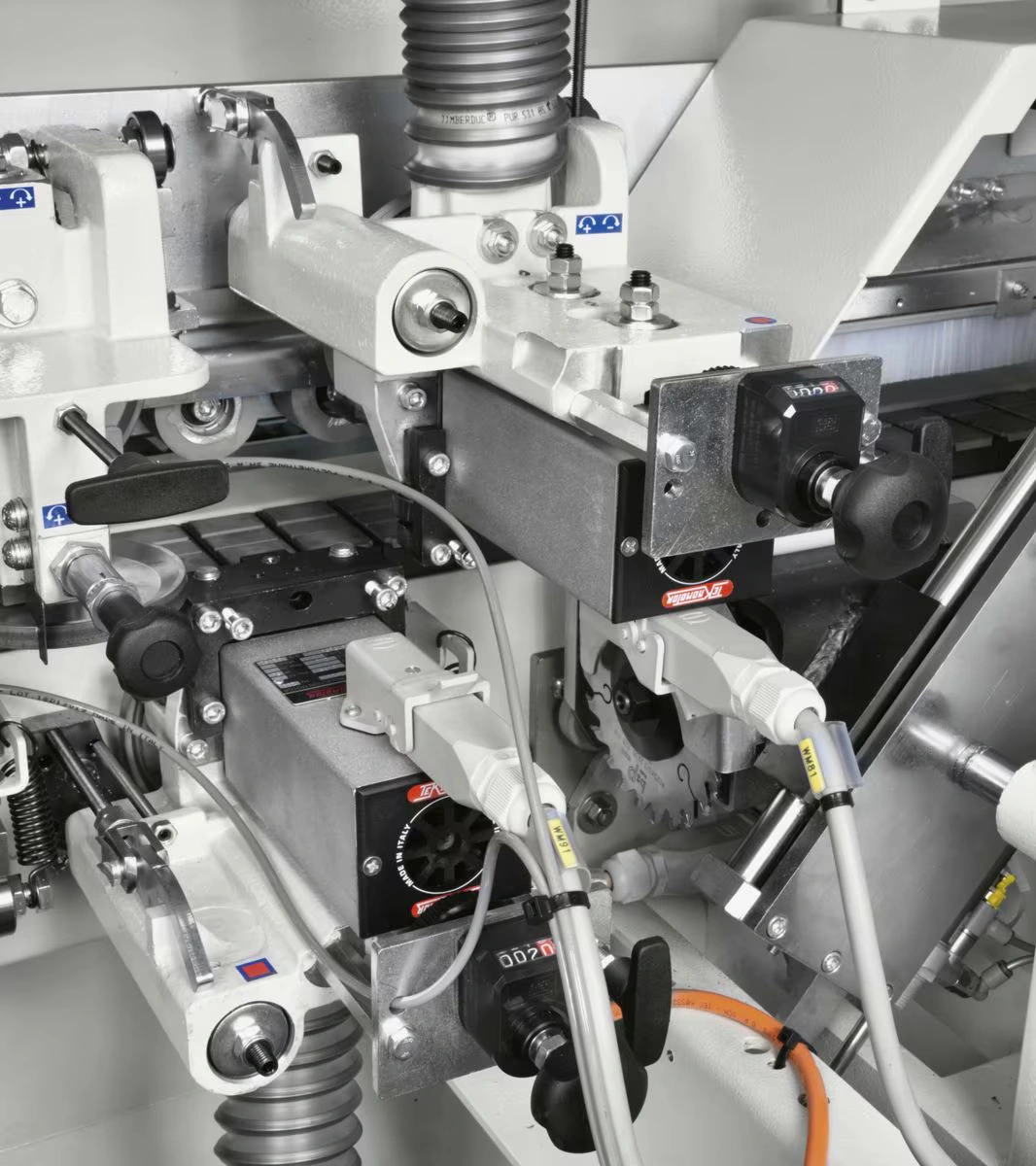 Augsta veiktspēja un ātra iestatīšana, pateicoties jaunajai automātiskajai sistēmai ar pneimatisku ieslēgšanu/izslēgšanu, ko vada iekārtas NC vadības sistēma – profilēšanas mezglam, malas skrāpēšanas mezglam un līmes skrāpēšanas mezglam.