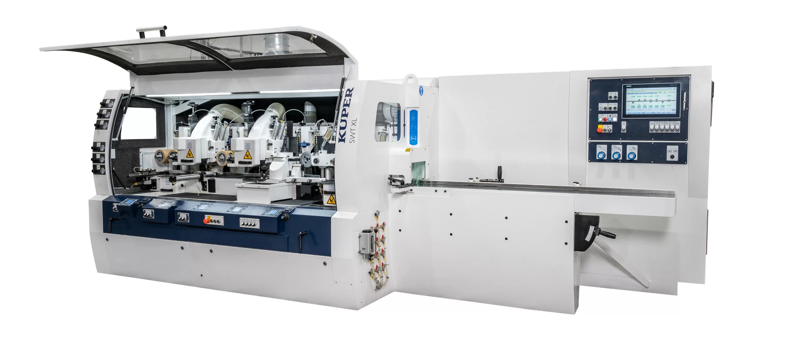 - Cietā hroma pārklājums padeves un darba galdiem