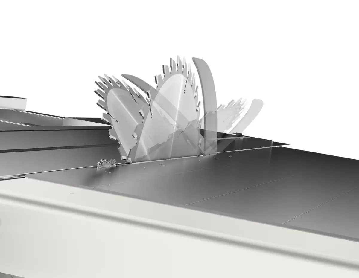 SCM risinājums ļauj izmantot 550 mm zāģa ripu gan 90°, gan ±46° slīpos griezumos, nodrošinot izcilu veiktspēju gan ar finierētām plātnēm, gan masīvkoka detaļām.