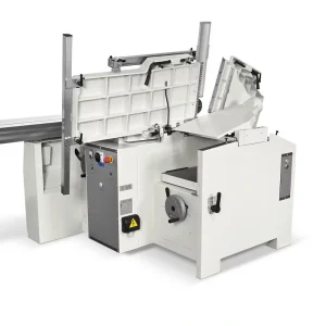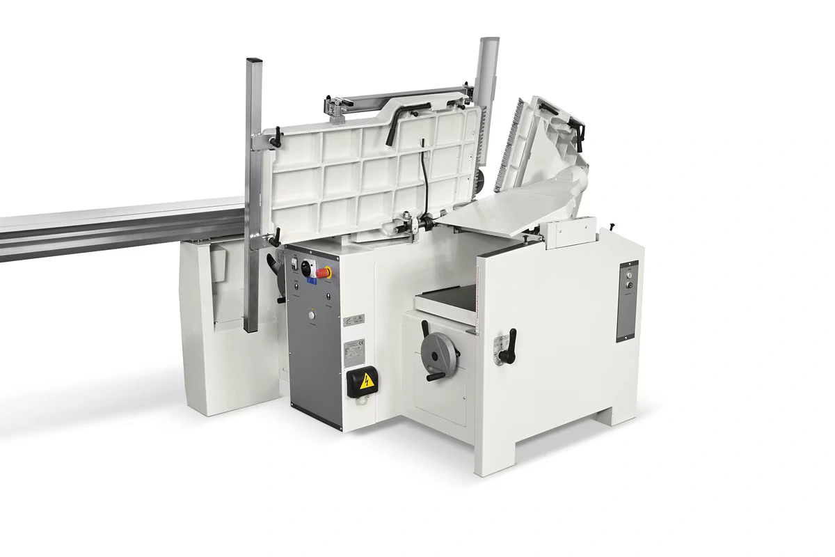 Virsmērs galdi veras uz zāģa un frēzes pusi – ergonomisks risinājums, kas aizņem maz vietas.