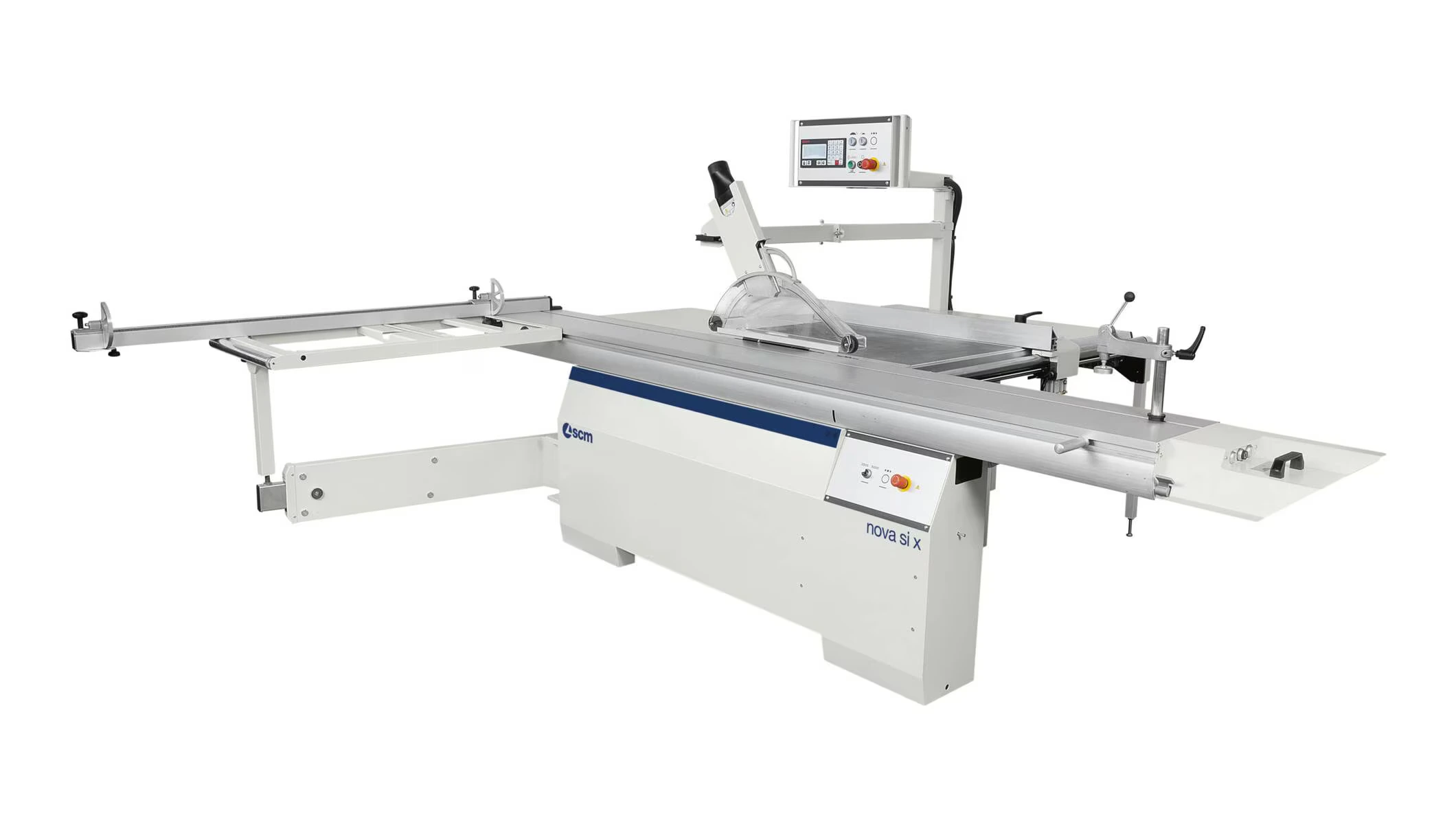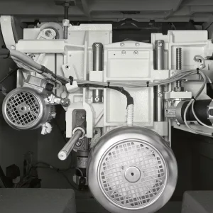 Jauns zāģa mezgls ar stingru čuguna konstrukciju, kas ļauj uzstādīt 400 mm diametra zāģripu ar uzmontētu iegriezējzāģi. Tas nodrošina perfektu un ērtu griešanu gan finierētām plātnēm, gan biezām masīvkoka detaļām, taisnā (90°) un slīpā (±46°) leņķī. Zāģripa izmanto 100% motora jaudu, pateicoties neatkarīgam iegriezējzāģa motoram, kas ir iekļauts standarta komplektācijā.