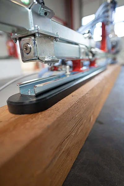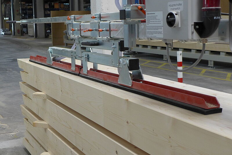 Speciāla pacelšanas ierīce veselu brusu, masīvkoka, sekciju (piemēram, sijas, rupji zāģētas plātnes) pārvietošanai ar pacēlāju. Piegāde ietver ķēdes pacēlāju vai stiprināšanu pie esošā halles celtņa. Strāvas padeve iespējama no klienta iekštelpu celtņa (400 V, 3 fāzes) ar iebūvēta transformatora palīdzību – nav nepieciešams papildu kabelis. Vadība caur rokturi (vadu vai radio).