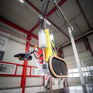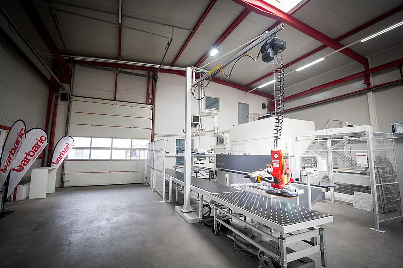 Ar šo sistēmu ir iespējama malas līmēšanas iekārtu un stacionāro paneļu zāģu padeve tikai ar vienu operatoru.